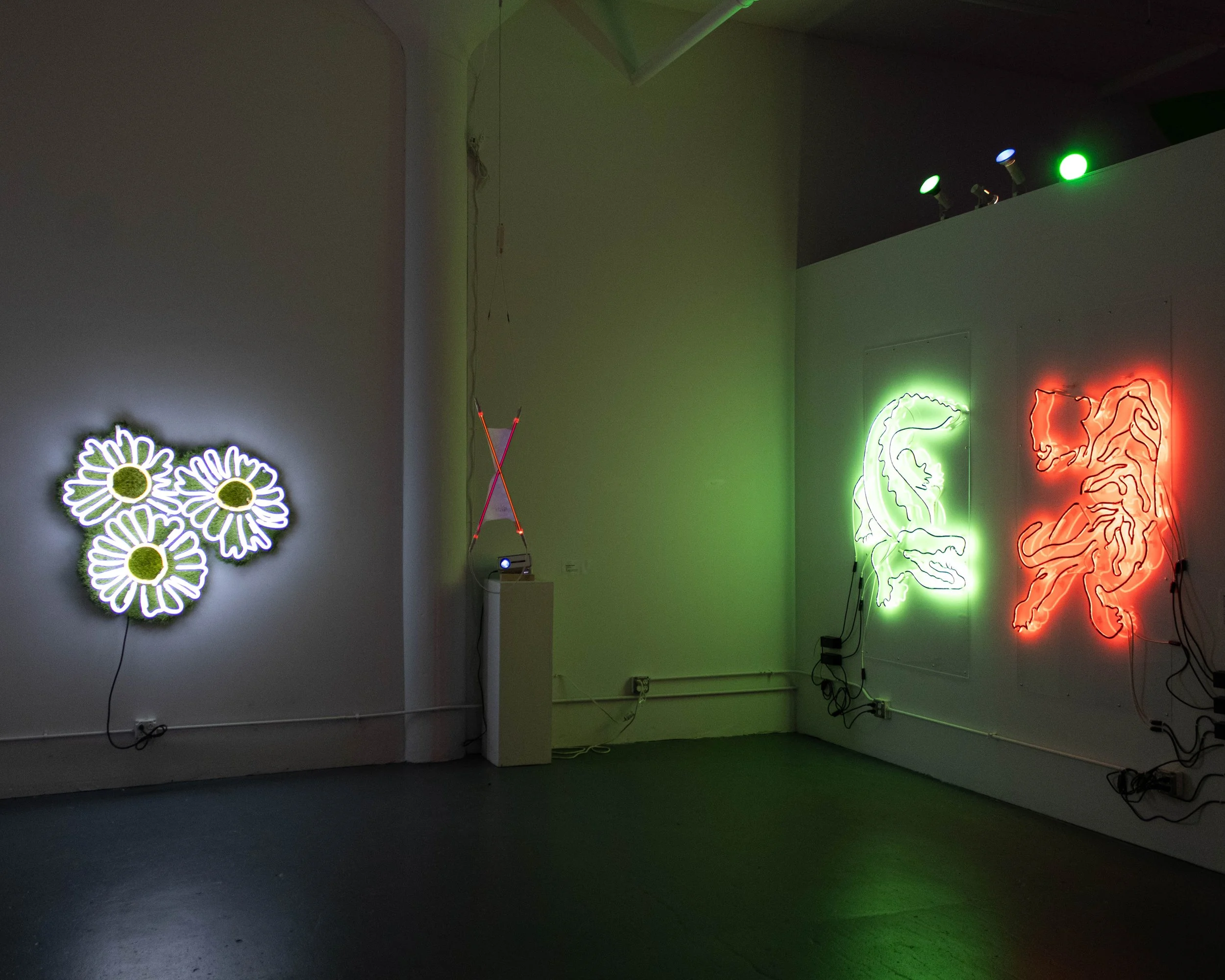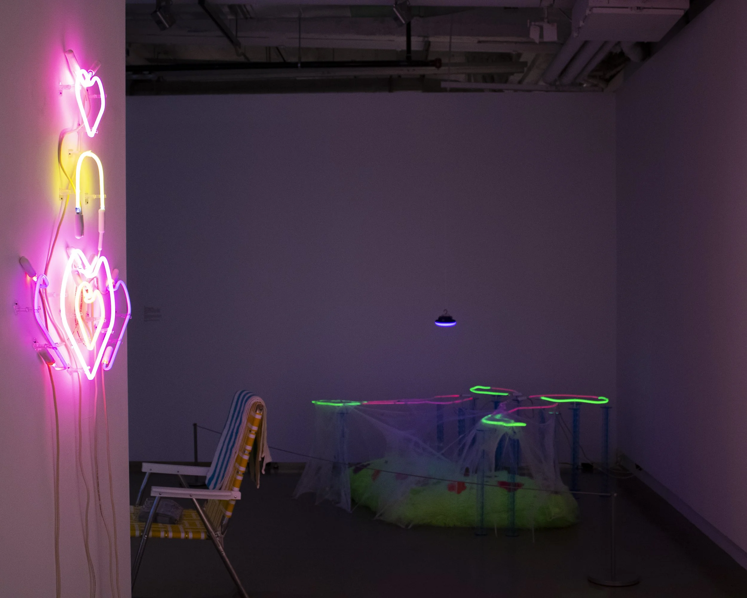 I approach each emotion as a distinct entity, giving it physical form to reflect the toll the metaphysical has on our bodies. I often use neon and light sources because, like emotions, light emanates from within but extends outward, affecting everything around it.